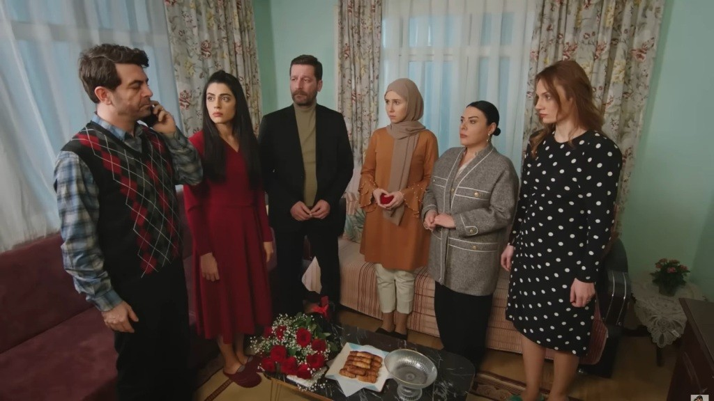 Wreszcie drzwi się otwierają. Cihan wychodzi, rozmawiając przez telefon. Gdy ją dostrzega, jego twarz twardnieje.