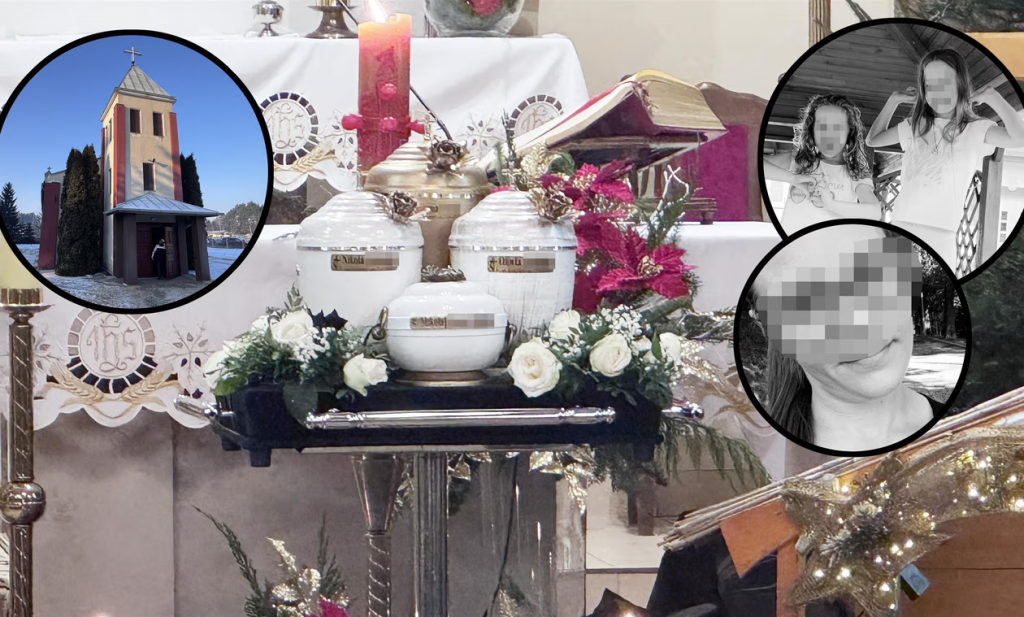 Przed południem, do małego kościoła zaczęli schodzić się mieszkańcy, przyjaciele, sąsiedzi i ci, których poruszyła tragedia z Chełmna. Pogrzeb odbywał się przy trzaskającym mrozie. Termometry wskazywały minus 12 stopni. Przed ołtarzem ustawiono cztery urny. Jedną — złotą, w której spoczywały prochy matki. I trzy białe, należące do dzieci. Widok, który ścisnął za gardło nawet tych, którzy przyszli w milczeniu. Wśród żałobników były też dzieci ze szkoły. W dłoniach trzymały białe róże. W ten sposób żegnały swoje koleżanki, Nikolę i Oliwię.