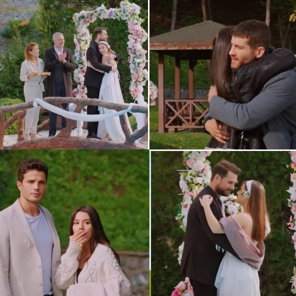 Feraye, stojąca z boku w jasnej sukni, podała mu tackę z obrączkami połączonymi czerwoną wstążką — symbolem więzi, której nie sposób rozerwać. Bulent ujął je z namaszczeniem i założył na palce Kuzeya i Sili. Przez chwilę panowała cisza, jakby cały ogród wstrzymał oddech.