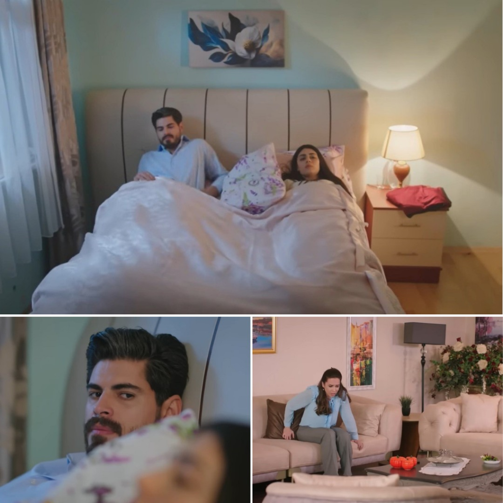 Cemil i Derya oddali swoją sypialnię Cihanowi i Hancer. Sami przenieśli się do salonu, który o tej porze tonie w ciepłym, przytłumionym świetle lampki stojącej na małym stoliku. Firanki z kwiatowym wzorem delikatnie falują przy uchylonym oknie, a ciszę przerywa jedynie cichy szum miasta.