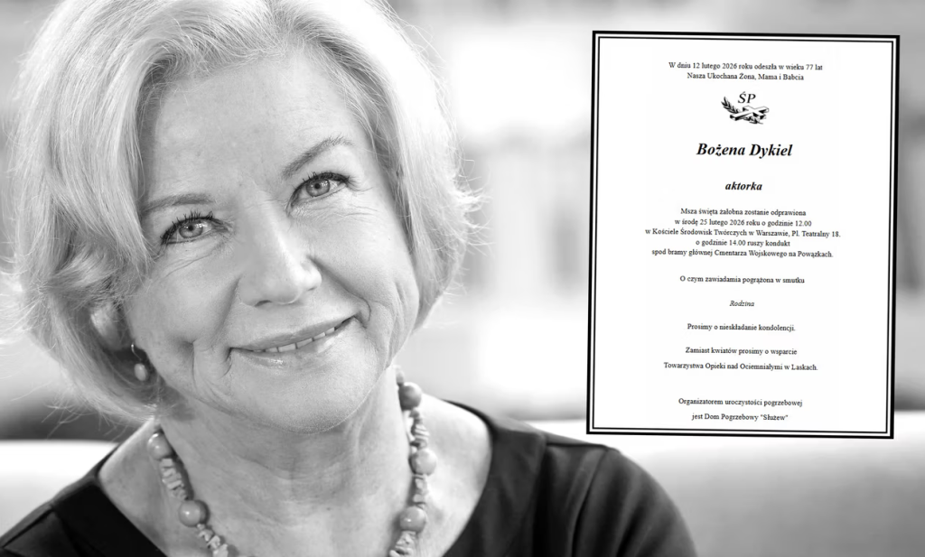 Bożena Dykiel zostanie pochowana na Cmentarzu Powązkowskim w Warszawie. “Msza święta żałobna zostanie odprawiona w środę 25 lutego 2026 r. o godz. 12.00 w Kościele Środowisk Twórczych w Warszawie, pl. Teatralny 18 o godz. 14.00 ruszy kondukt spod bramy głównej Cmentarza Wojskowego na Powązkach. O czym zawiadamia pogrążona w smutku rodzina” — napisano.