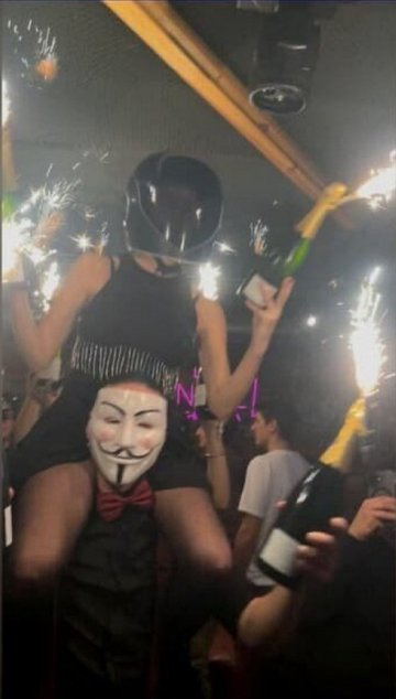 Pojawiły się zdjęcia pokazujące kobietę w czarnym kasku, która – siedząc na ramionach osoby w charakterystycznej masce – trzymała butelkę z fajerwerkiem bardzo blisko sufitu. To właśnie wtedy doszło do zapłonu. Godzina tragedii została uchwycona na jednym ze zdjęć – 01.26. Cztery minuty później na miejsce wezwano straż pożarną.