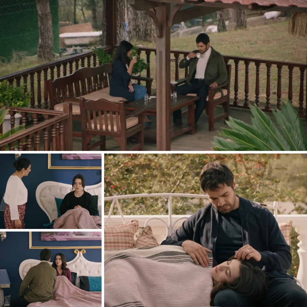 Halil siedział nieruchomo, jedną ręką opierając się o poduszkę w kratę, drugą delikatnie przesuwając palcami po pasmach włosów żony. Jego spojrzenie było skupione, pełne troski i czułości, jakby każda chwila była dla niego święta. W końcu powieki Zeynep drgnęły, rozchyliły się powoli, a jej oczy spotkały jego.